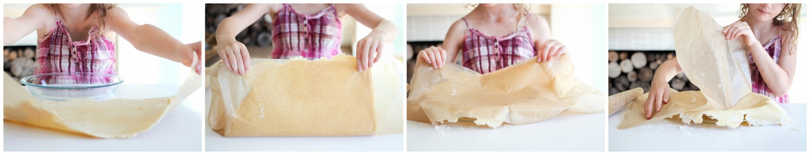 roll. i work from the middle out to the edges forming a circle. i often turn the parchment paper to work it from different angles. if it pulls apart or tears, simply grab a piece from the side and do some patch work. remember - this is the bottom so it won't be seen.