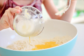 take a bit of cream and brush it on top of the dough. use your fingers or a pastry brush to move it around a bit, covering the top in a random way - no need to be perfect and cover every single spot - please note, by daughter got a bit carried away